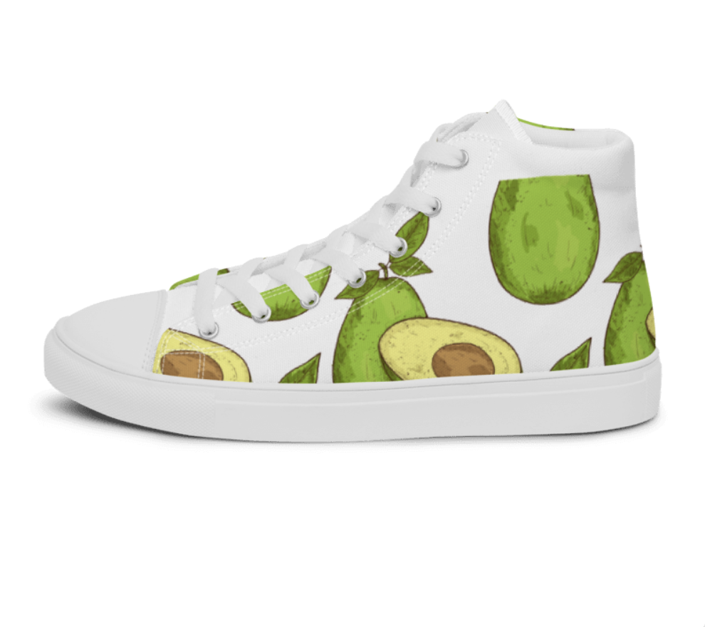 Step out in a unique, fresh style with these custom, avocado-themed high-top sneakers. Featuring an all-over vibrant print, these shoes are perfect for Avocado lovers and those looking to add a trendy, playful touch to their casual wardrobe. These handmade, fashionable shoes are sure to spice up your outfit. Get yours now!