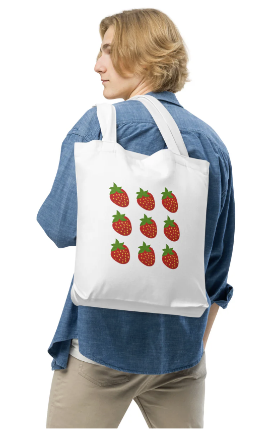 Carry a touch of summer everywhere you go with this charming, eco-friendly tote bag! Made from premium, 100% natural cotton canvas, this bag combines durability with a delightful strawberry print that adds a fresh, cheerful vibe to any outfit or outing.